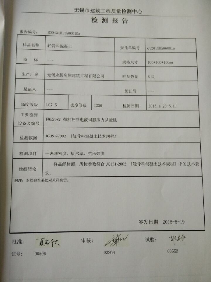 輕骨料混凝土原材料檢測(cè)報(bào)告